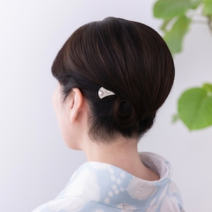 上品な輝きを放つアコヤパールをあしらった、シンプルな扇型のかんざしです。