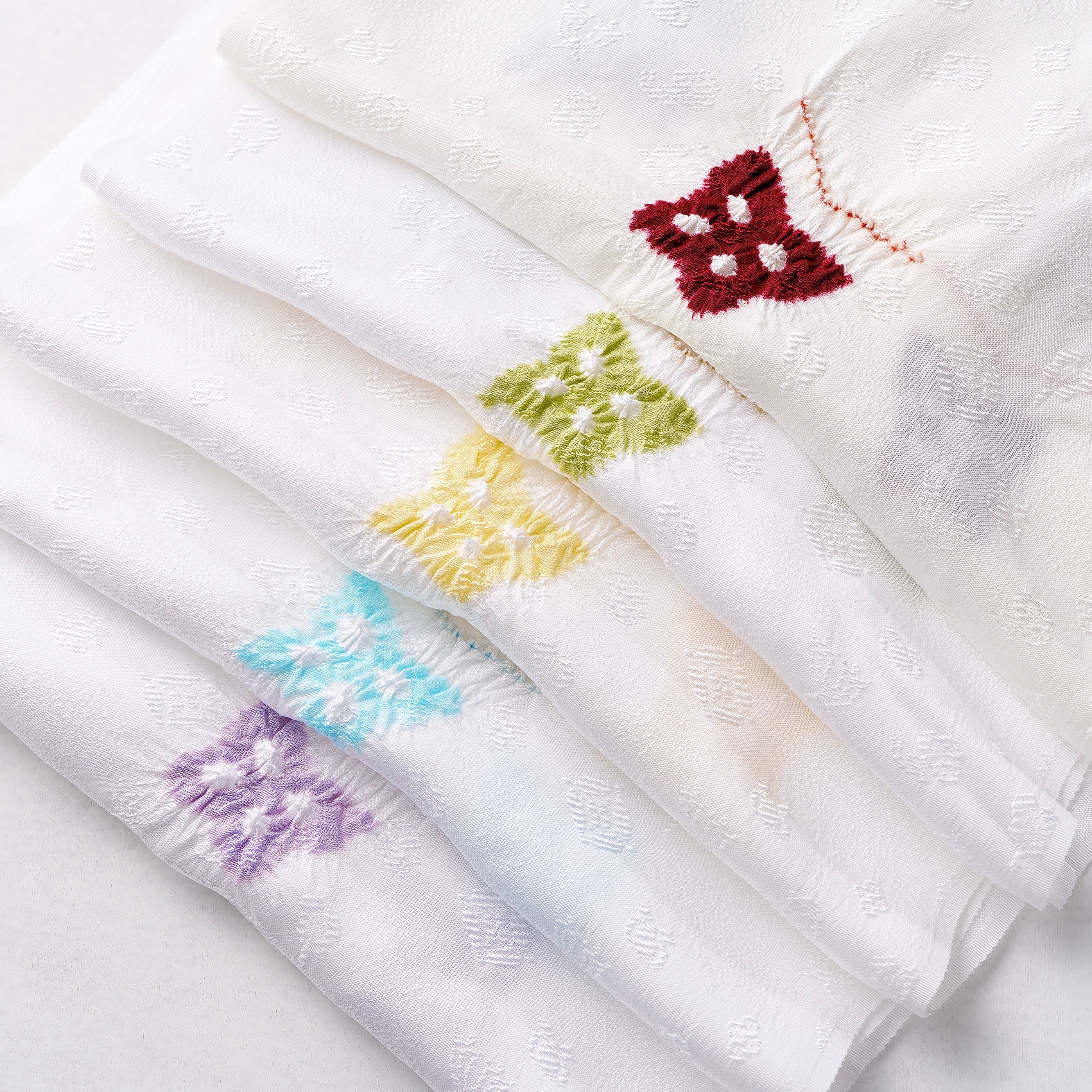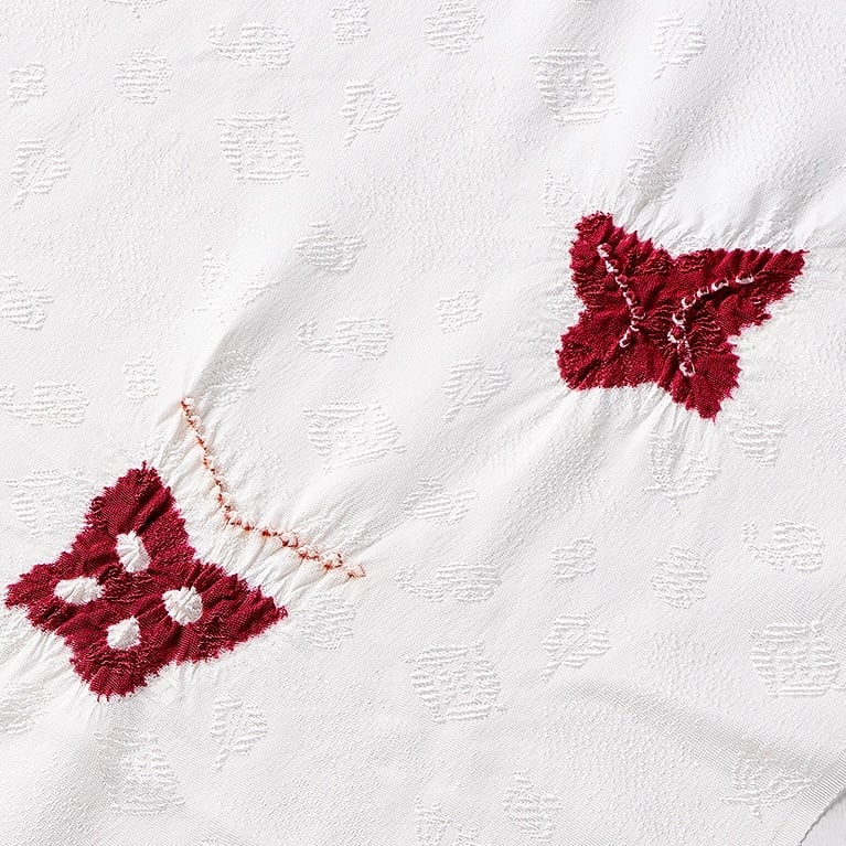 小さな蝶の絞りが白地に映え、上品なアクセントに。