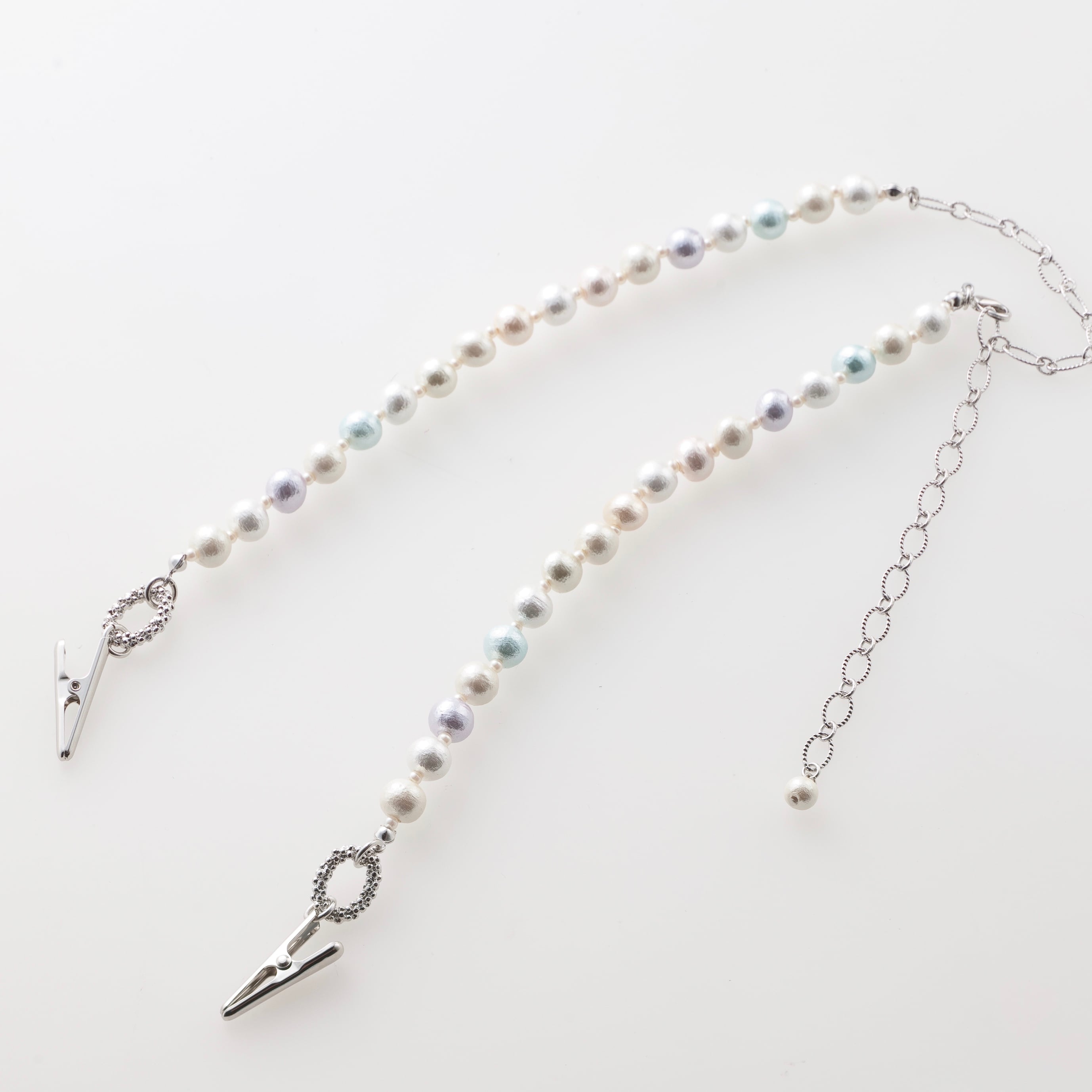 ナナイロの名前の通り七色(ホワイト×キスカ×アクア×ラベンダー×ミントグリーン×ライトオレンジ×ピンク)のコットンパールを使用しています。