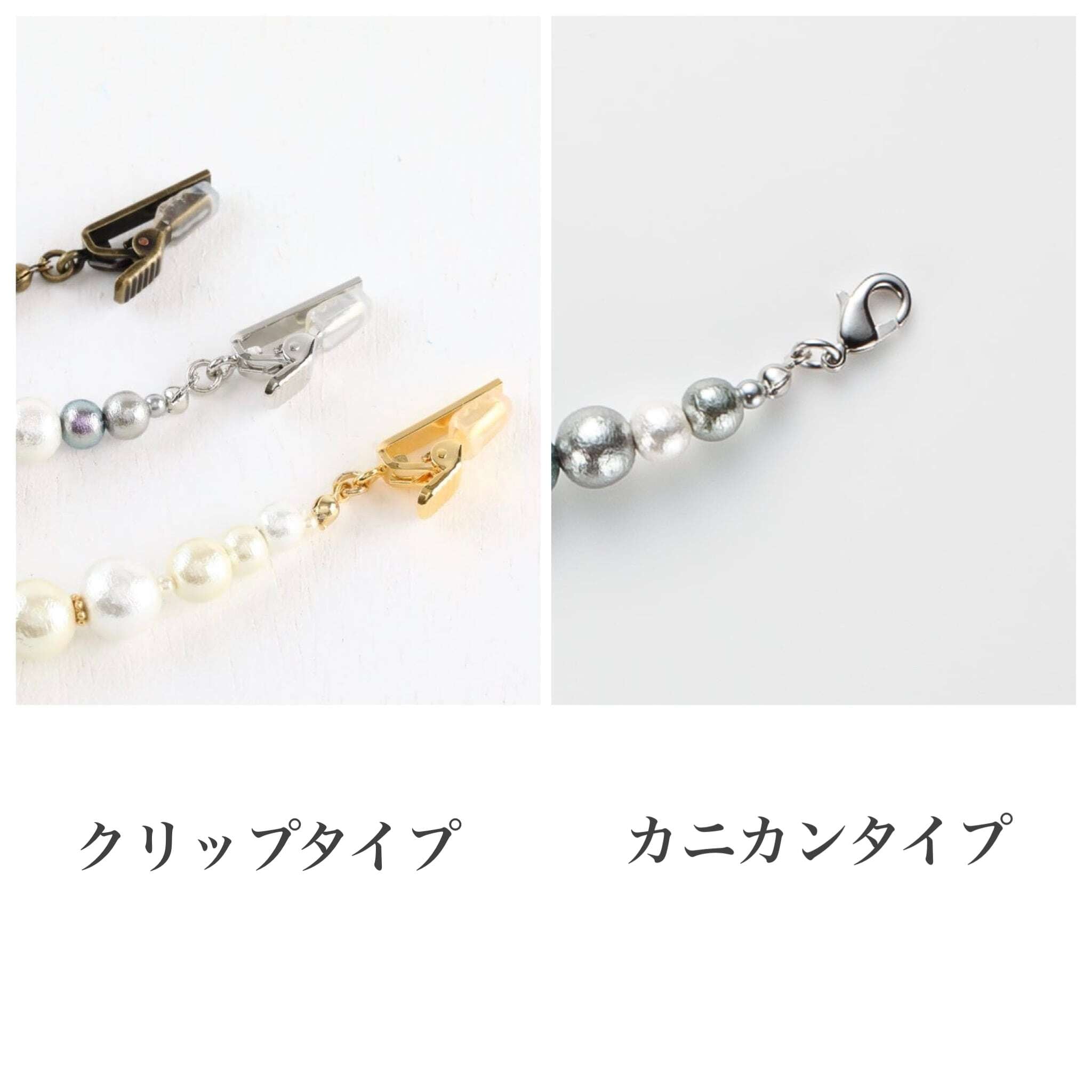 ※両サイドはクリップとカニカンからお選びいただけます。カニカンをお選びいただいた場合は乳に通してお使い下さい。
