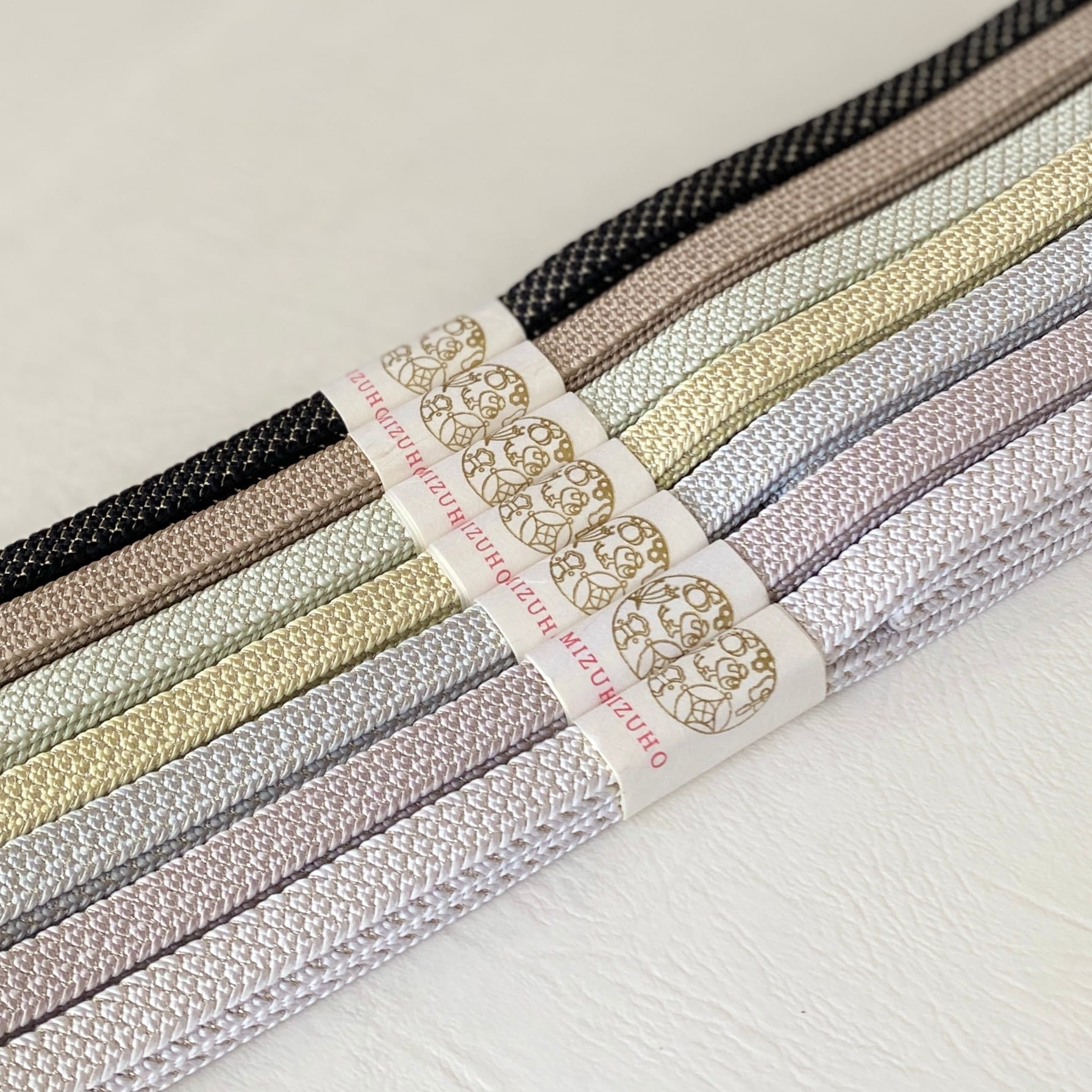 どちらかといえばカジュアルな三分紐。もっとコットンパールなど光沢感のある帯留に合う三分紐があったらいいなと思い、【衿秀】さんに作っていただきました。